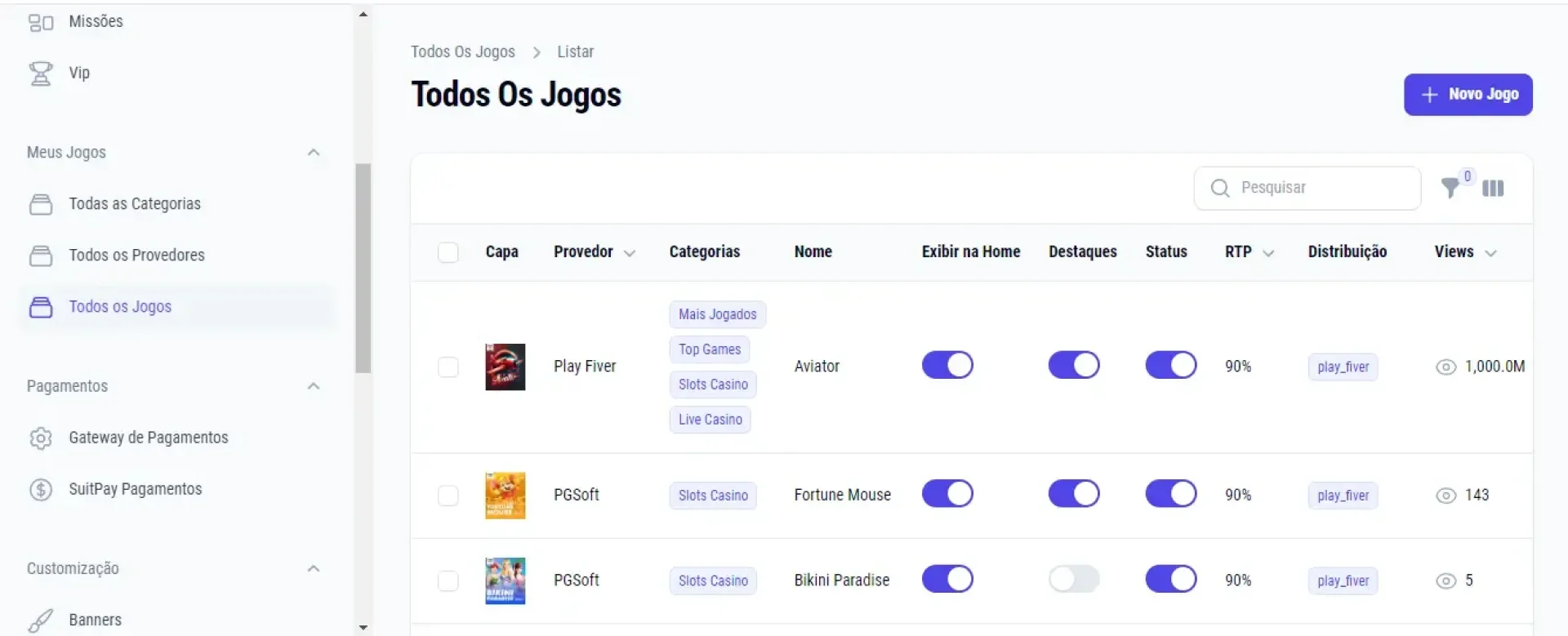Controle total sobre depósitos, saques, jogos, usuários e promoções.